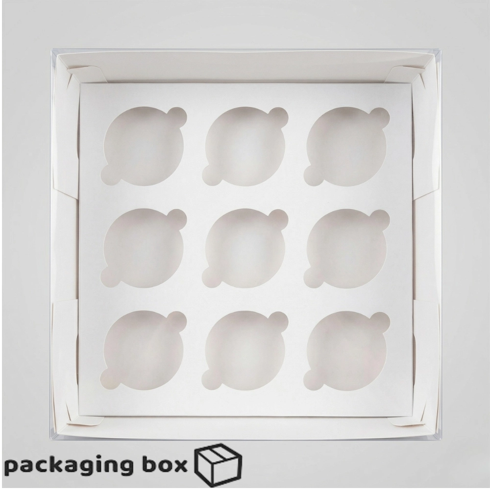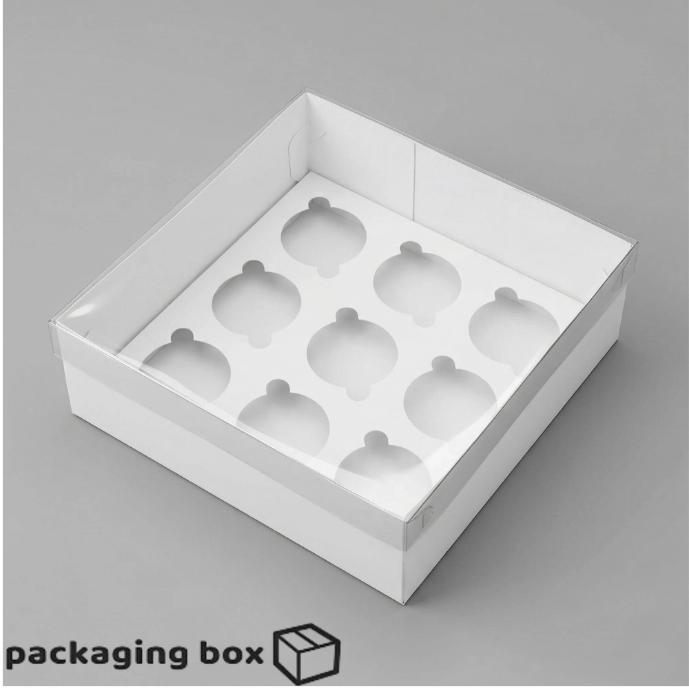 9 Cavity Cake Box with Clear Lid – White Bakery Packaging