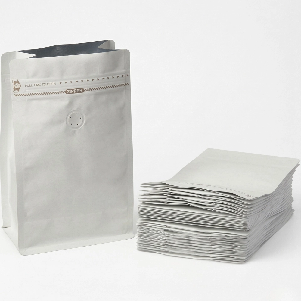 🌟 White Stand Up Pouch With Valve – Compact Premium Packaging